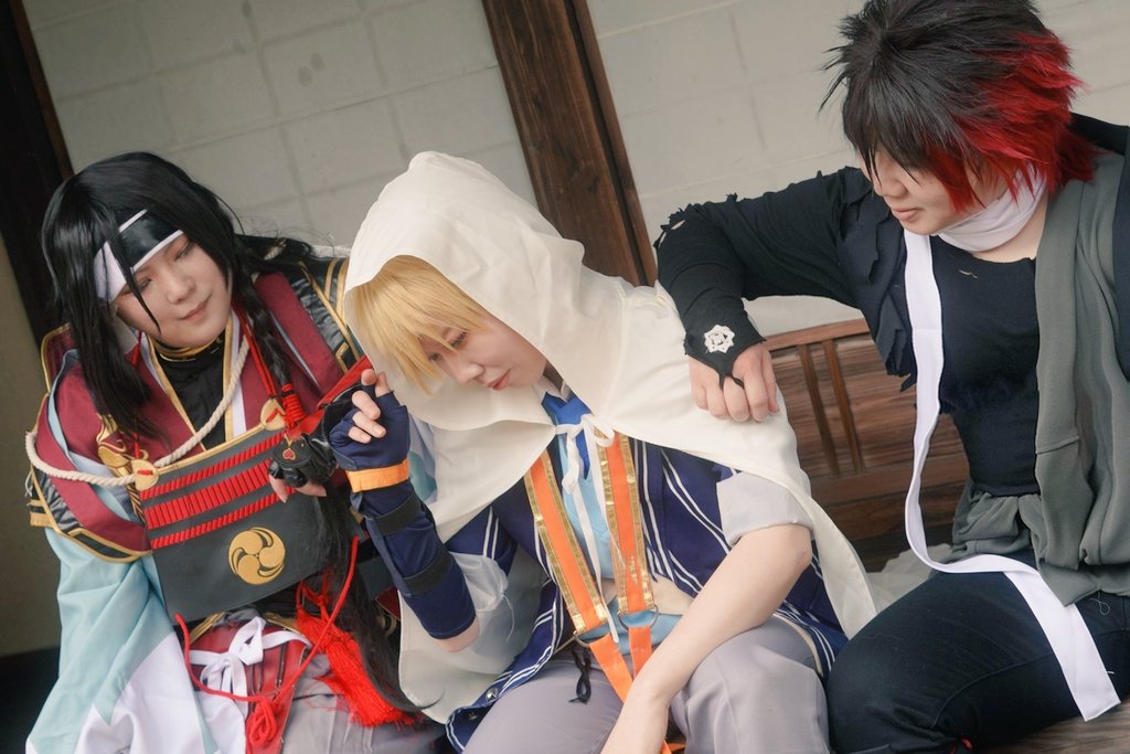 コス写真注意】 #みんなの文久土佐組が見たい 何度も同じ写真あげちゃうけど また3振で撮りたい 陸奥(きょっちゃん @pro_manazou) 肥前(さと) 南海(葵さん @aoi_kxx) 📷️(めりーさん @akaryotyu_NNB )
