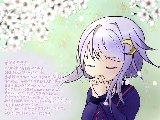 14 43 草田草太先生へ 私が提督になるきっかけを下さり、ありがとうございました。 初めてのファンアートがこのような形になってしまったことは残念ですが、僅かばかりのお慰みになればと思い、拙作ではありますが弥生ちゃんを描かせていただきました。 どうか安らかにお休みください。 22/10/14 17:37