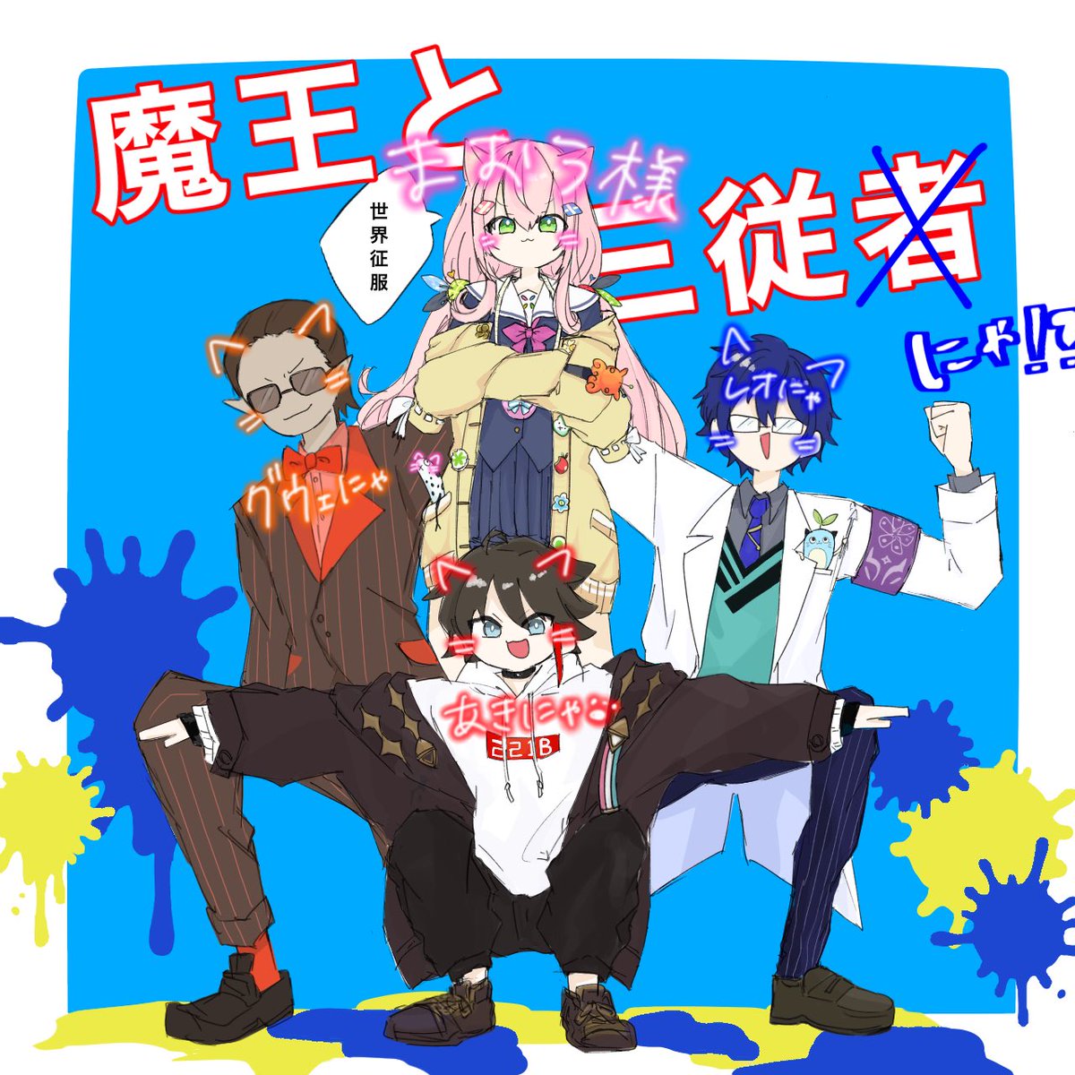 ファイト〜! #魔王と三従者WIN #Nari_Art #さ絵ぐさ #推す画ール #まめねことレオス