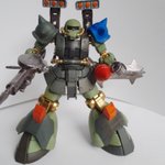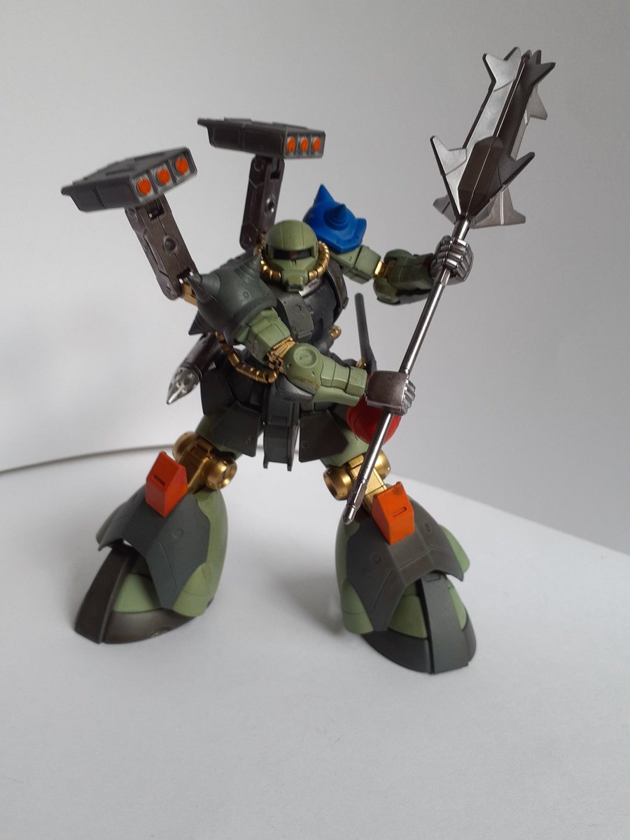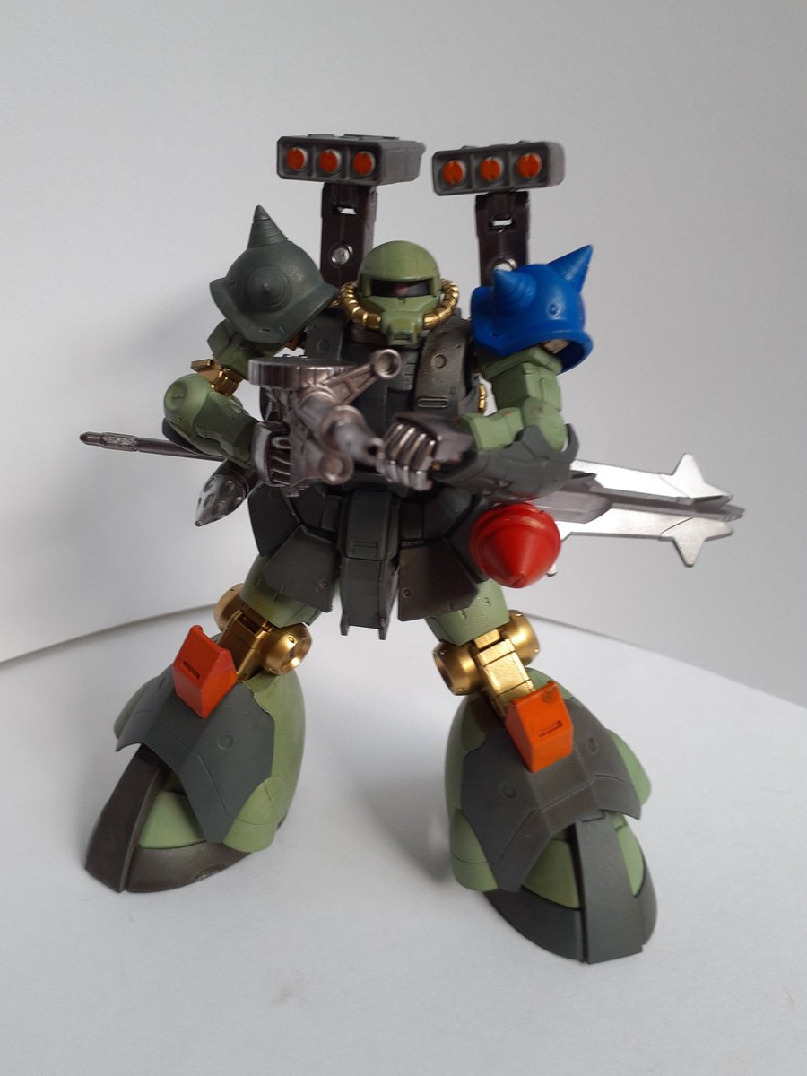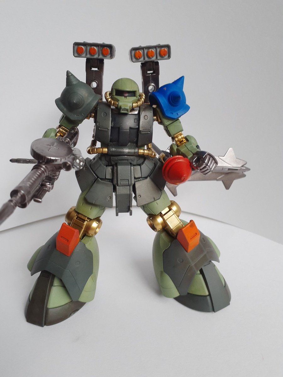 #ガンプラ #ガンプラはどんな自由な発想で作ってもいいんだ #ガンプラの画像を貼るとRTされると聞いて #ガンプラ改造 #ガンダムマーカーエアブラシ ミキシングガンプラ完成しました。名前はザクスクラッパーグリーンです。