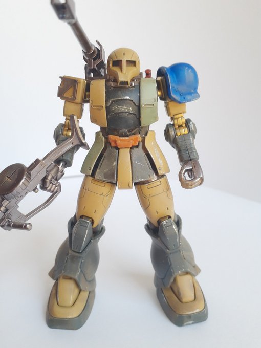 #ザク1製作 #ガンプラ #ガンプラ好きな人と繋がりたい #ガンダムマーカーエアブラシ #オラザク その12 完成‼️名前はザク1キャノンタイプ ザク1の現地改修機です‼️チッピングとウェザリングやスミ入れしました‼️