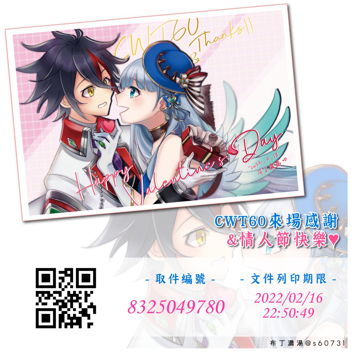 【CWT60來場感謝】 感謝來西打的小天使們🥺😭🙏 開了ibon列印,希望大家都有個快樂的情人節💕 取件號碼:8325049780 列印期限:到02/16晚上10:50(只有3天!!) #白猫お絵描き #ハッピーバレンタイン