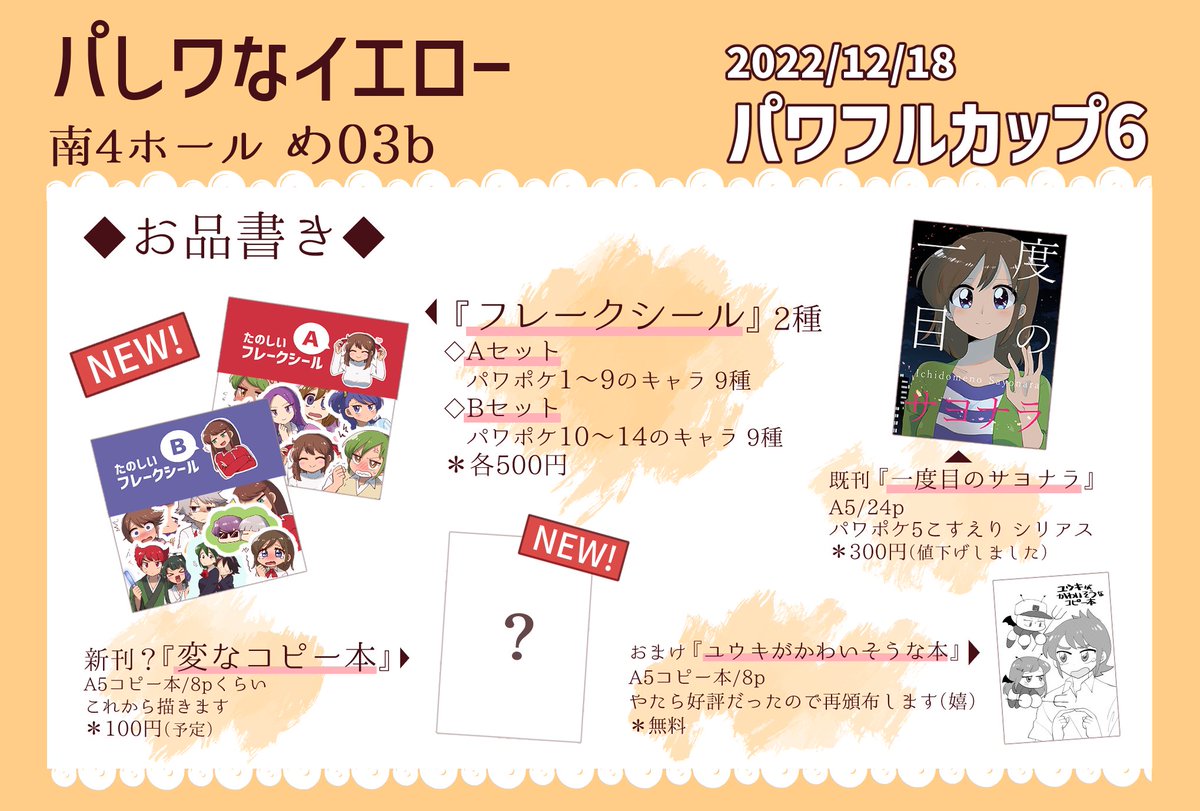 31 43 12/18(日)パワカプ6 現時点でのお品書きです。なんやかんや出すものがありそうで良かった!め03bでお待ちしてます! 22/12/12 21:36