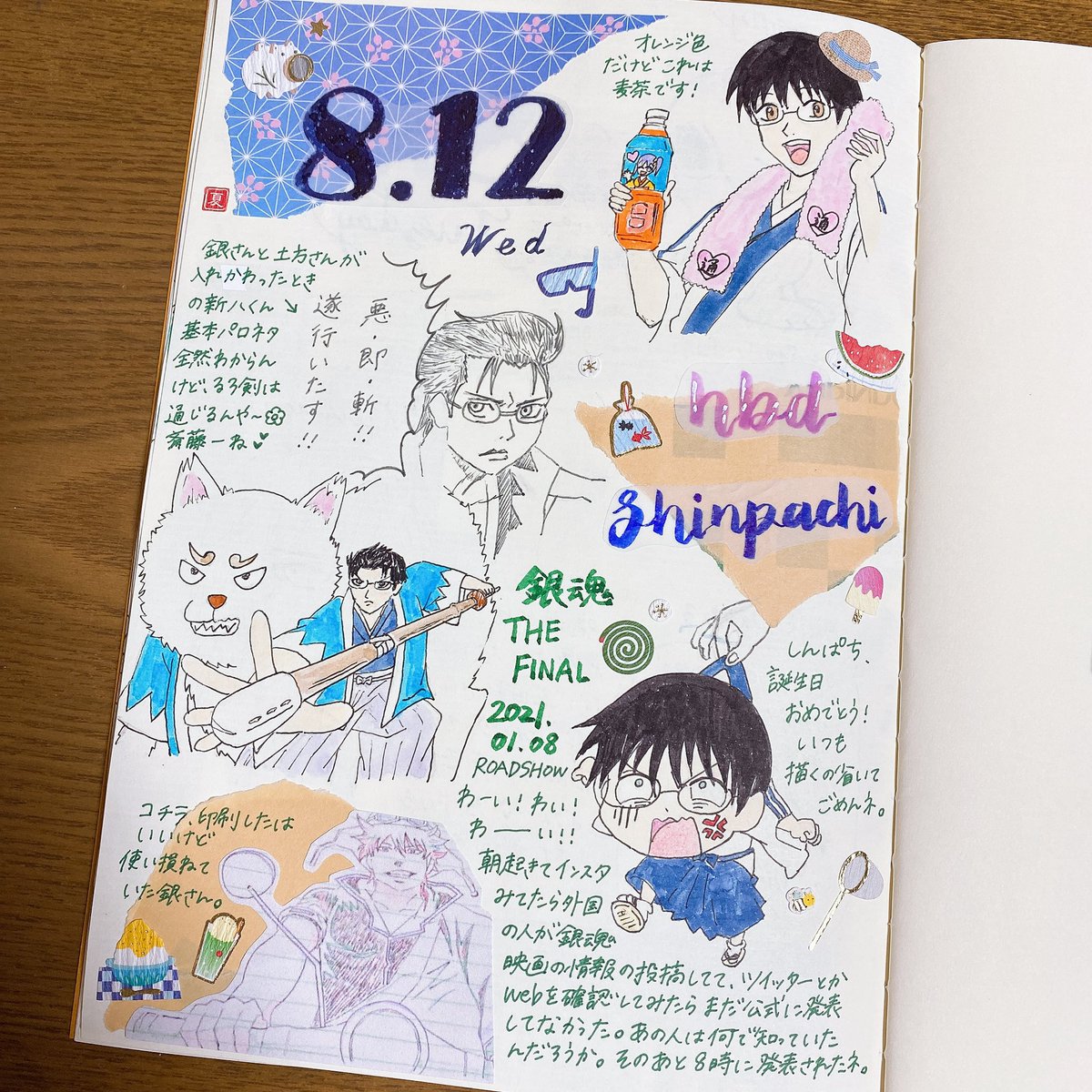 2 12 過去模写詰め合わせと去年の1ページでまとめてお祝い🥳 #アッシュ・リンクス誕生祭2021 #志村新八誕生祭2021 21/08/12 02:13