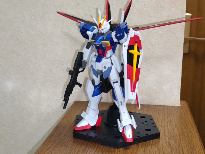 二体目、完成です😃😃 大好きな、インパルスです。 今回は、百均キラキラテープを、センサーっぽいところに使用してます。(写真だとうまく光らなかった😅😅😅) #ガンプラ #ガンプラ好きと繋がりたい #ガンプラの画像貼るとRTされると聞いて #ガンダムシードディスティニー #フォースインパルスガンダム