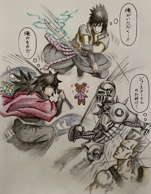 キャラ名を覚えるために娘にお願いされて出張前に夜な夜な描いたイラスト^_^ #ジョジョの奇妙な冒険 #ジョジョ #イラスト #ジョジョの絵 #ジョルノジョバーナ #荒木飛呂彦 #jojo_anime #ジョジョワールド #パパ #娘 #アニメ #色鉛筆イラスト