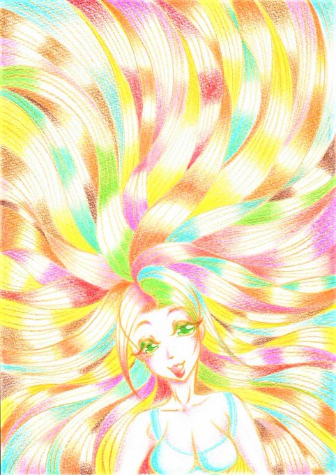 彩髪花火 #オリジナル #イラスト #髪 #色鉛筆 #アナログ pixiv.net/artworks/77739…
