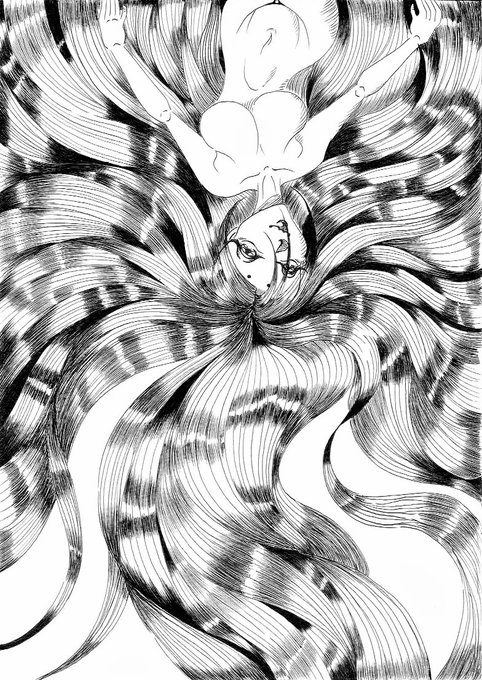 0 1 黒髪姫 #オリジナル #イラスト #アナログ #モノクロ #ボールペン #ペン画 pixiv.net/artworks/80632… 20/04/07 21:23
