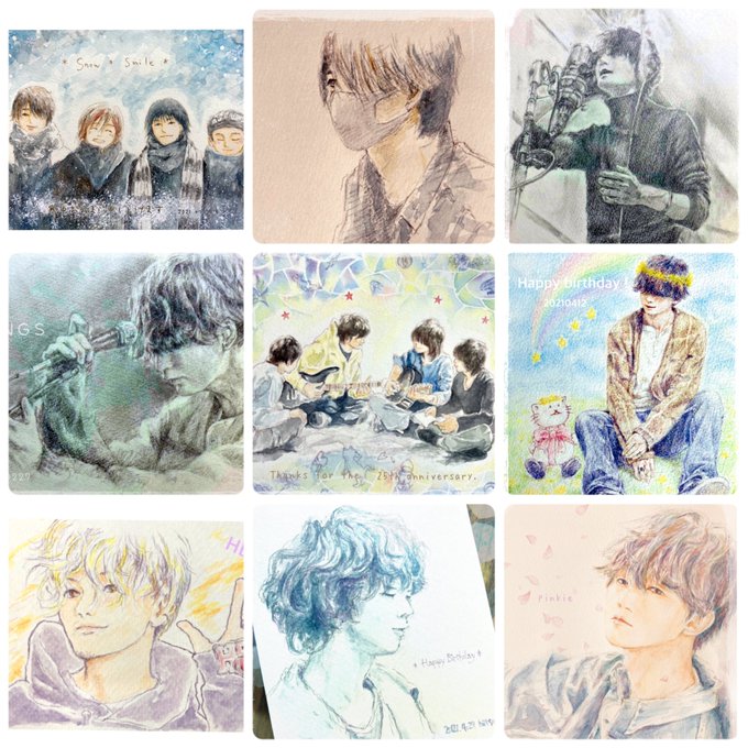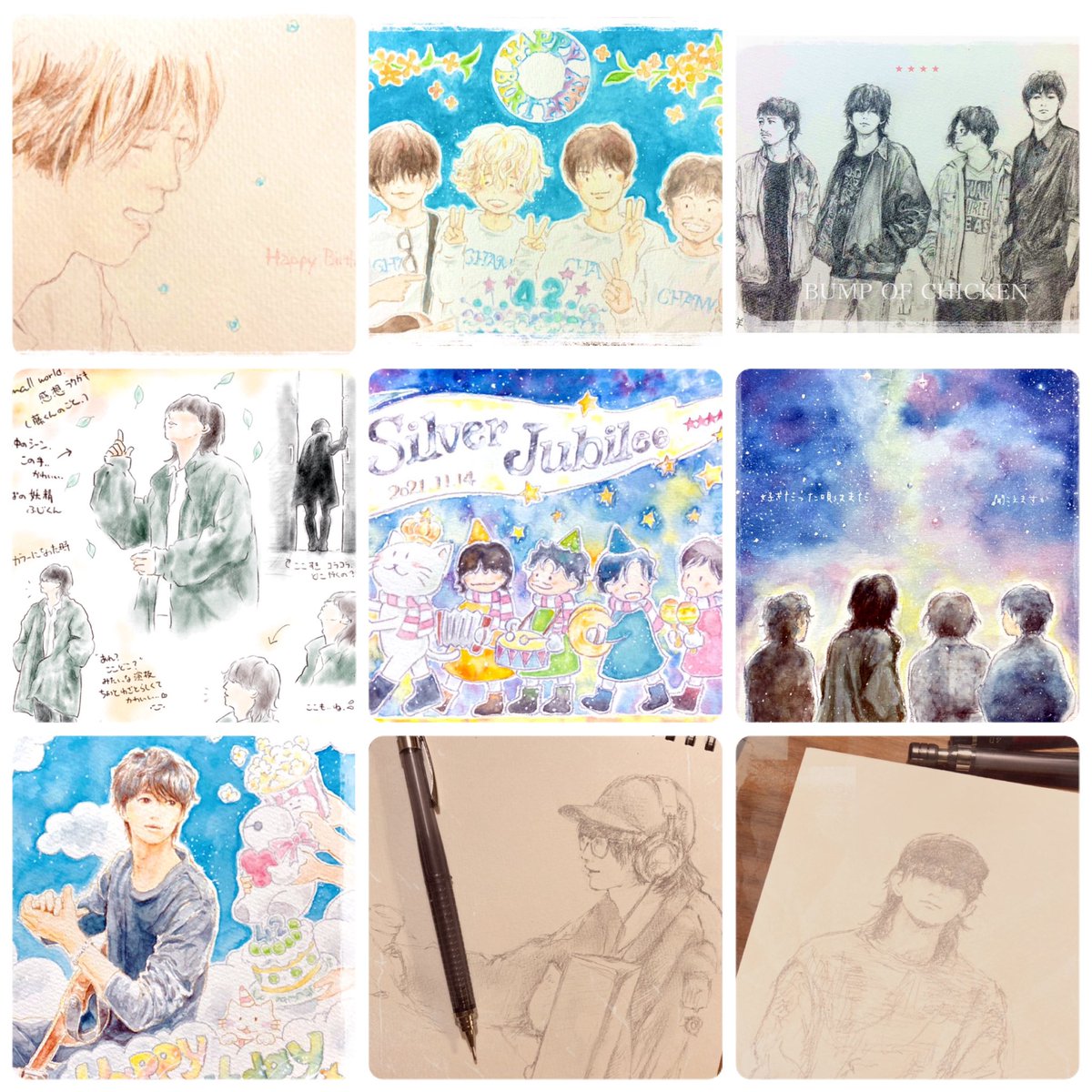 #2021年を振り返る 今頃すいません🙏💦どのくらい描いたかなぁって並べてみました。ダメな時も優しく見守っていただき本当にありがとうございます🙏💕夏以降モネ絵も沢山描いたなぁ.. #BUMPOFCHICKEN #おかえりモネ #ファンアート