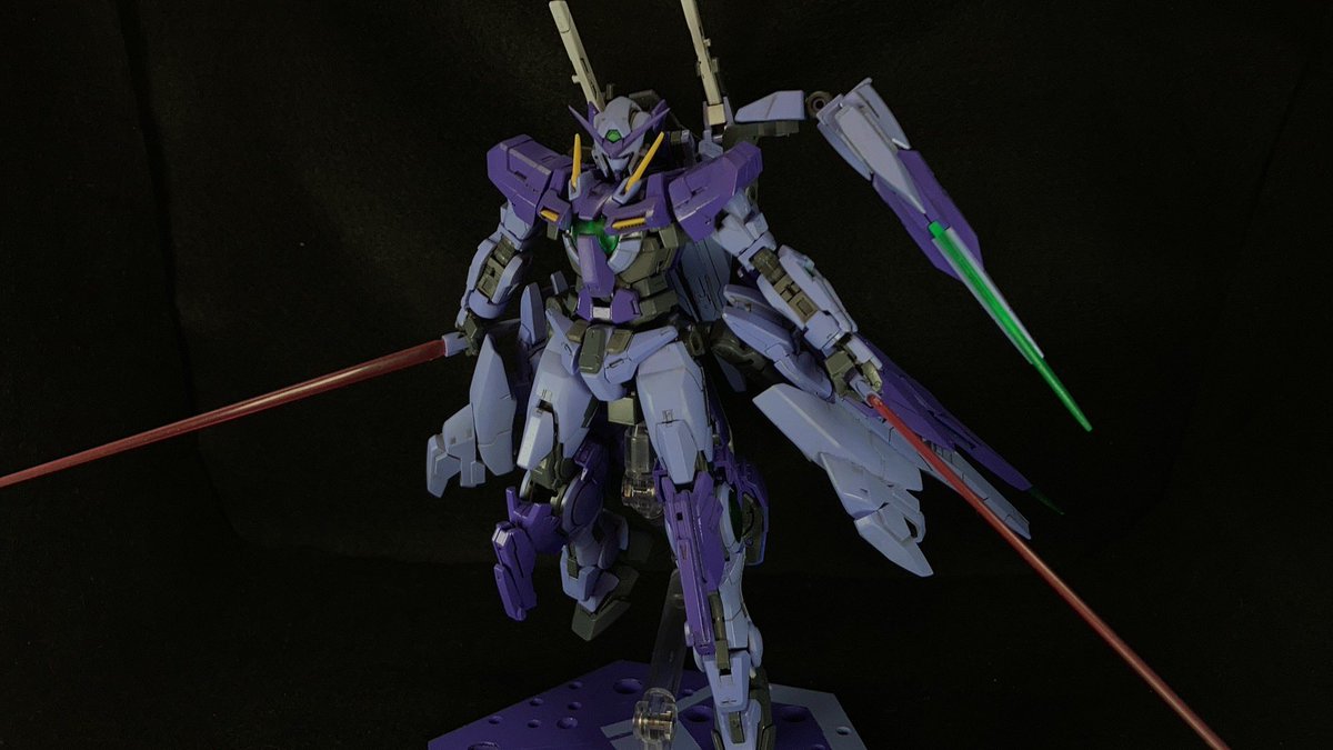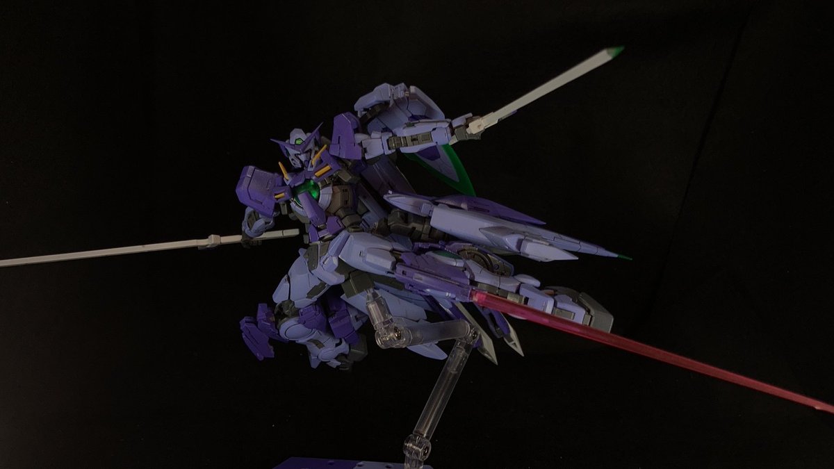 HGダブルオークアンタフルセイバーロールアウト!!今作はいつもやってる筋彫りやデカールのほかに機体カラーも変更。今回も時間と金が吹っ飛びましたでもカッチョよく仕上がったので問題ありません。 #ガンプラ改造 #ガンプラの画像貼るとRTされると聞いて #ダブルオークアンタフルセイバー