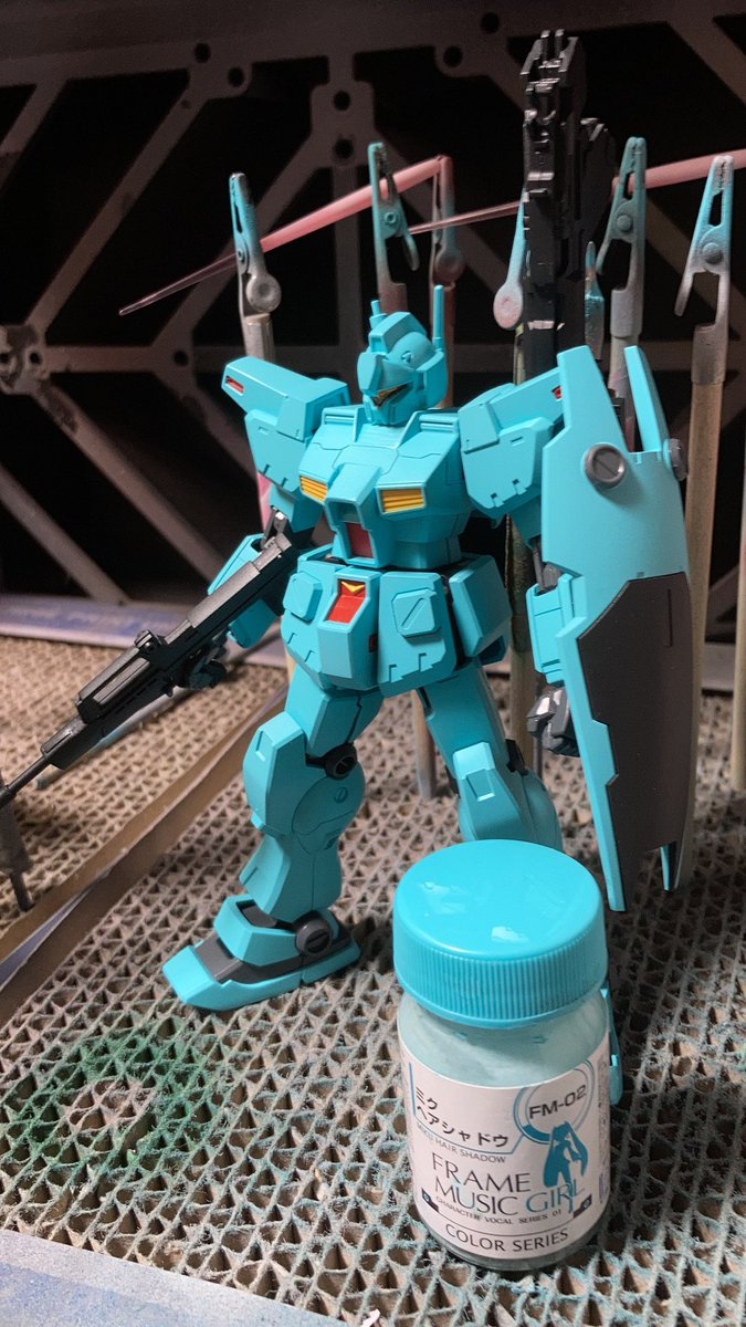 塗装…完了です。ミク色に染め上げましたそれにしてもジムカスタムって渋みとカッコ良さがうまくミックスしてるよね。#ガンプラ #ガンプラ改造 #ガンプラの画像貼るとRTされると聞いて #HGUCジムカスタム