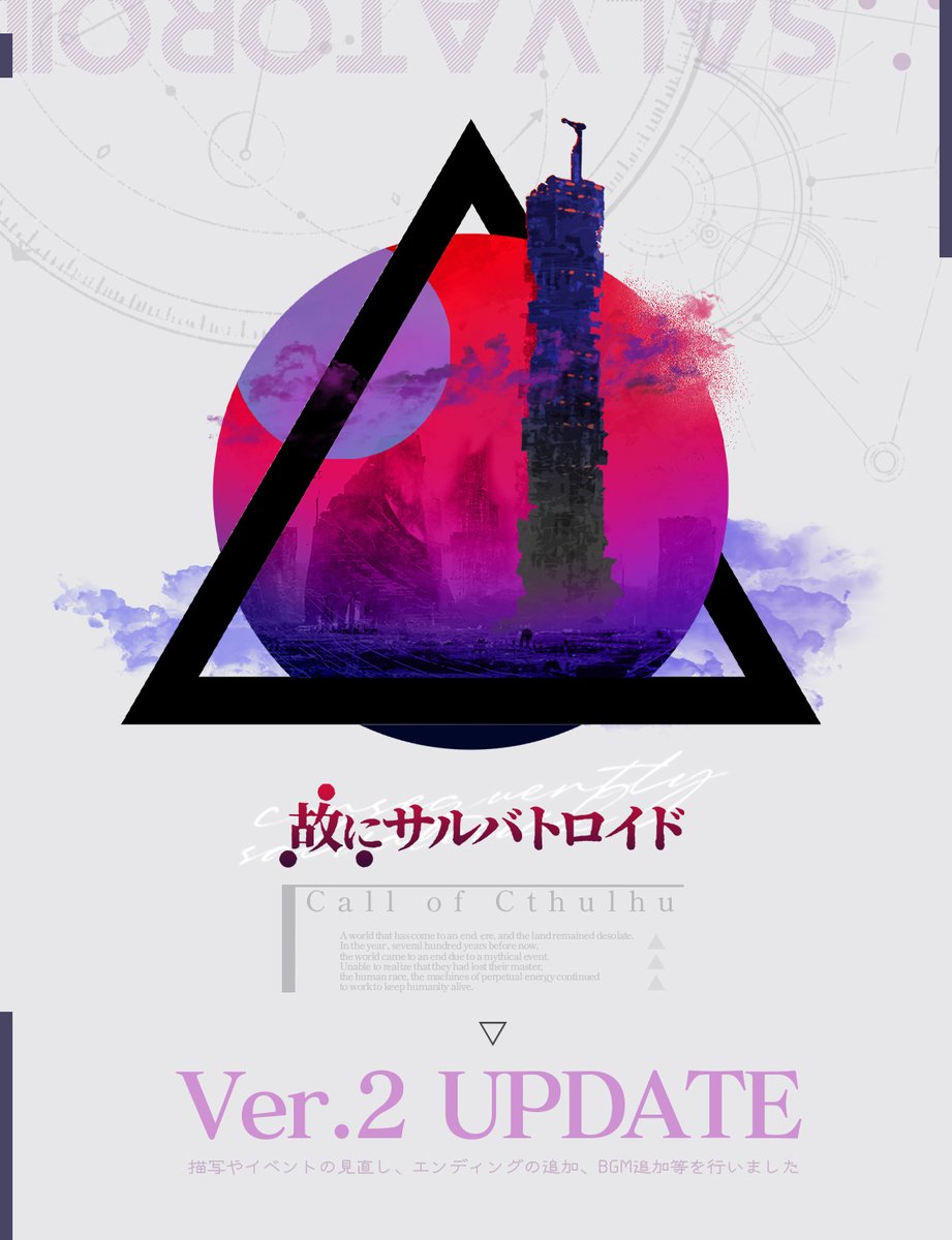▼ ̄ ̄ ̄ ̄ ̄ ̄ ̄ ̄ ̄ ̄ ̄▼ CoC6th ∴故にサルバトロイド ▲___________▲ Ver.2にアップデートしました。 アップデート記念で8/20(日)中まで値引きセールしています。 ▽BOOTH▽ somu.booth.pm/items/4436875
