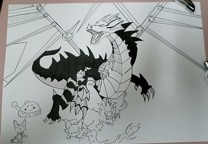 オレカバトルのドラゴンたちのカードを見ながらを描きました。 #絵描きさんと繋がりたい #オレカバトル