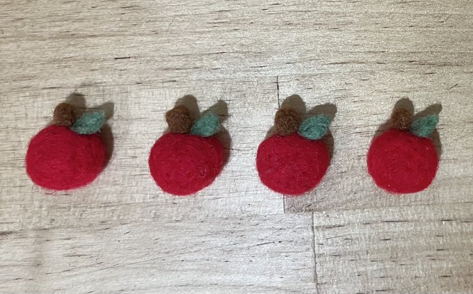 りんごさんが ヘアゴムになりました🍎 今日はいい天気です! #ハンドメイド #羊毛フェルト #りんご #ヘアゴム