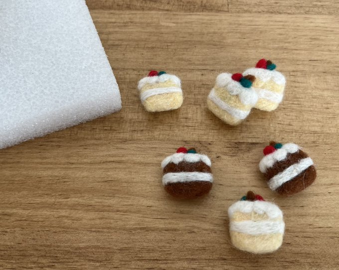 私は 一個の作品だけに 集中ってのが苦手で 何個かの作品同時進行にしちゃう笑 今も 汽車のボタンはめ作りながら ケーキ🍰も作っちゃったり💦笑 #ハンドメイド #羊毛フェルト #ケーキ #ミニチュア