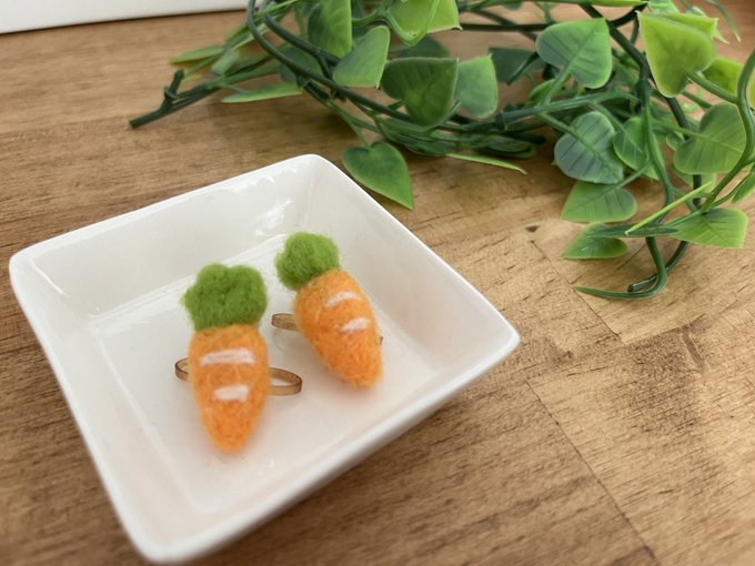 1 5 にんじんさんも ヘアゴムに変身させました🥕 お野菜 ほかに もう1種類くらいは 作りたいなぁ🤔 #ハンドメイド #羊毛フェルト #にんじん #ヘアゴム 22/08/21 09:04