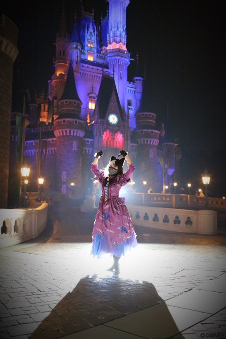 👻スプーキー boo パレード👻 🐈⬛猫ダンサー仮装🐈⬛ "一人のミスも見逃しません" #Dハロ仮装2021 #Dハロ仮装 #Dハロ仮装者さんと繋がりたい 城前の逆光写真撮ってもらいました!!スプブの雰囲気にあって最高でした🥺🙏