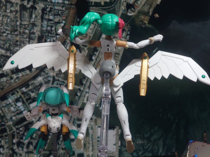”ティアーシャ高速飛行形態プロジェクト” #30MS #デスクトップアーミー #ティアーシャ ナビ「あの、もしかして私もティア姉を後ろから押したりするんでしょうか?」 ティア「私は一人で大丈夫! みてみてこの強化パーツ!!」 ナビ「(緑ちゃんみたいな無茶いわれなくてよかった♡)」