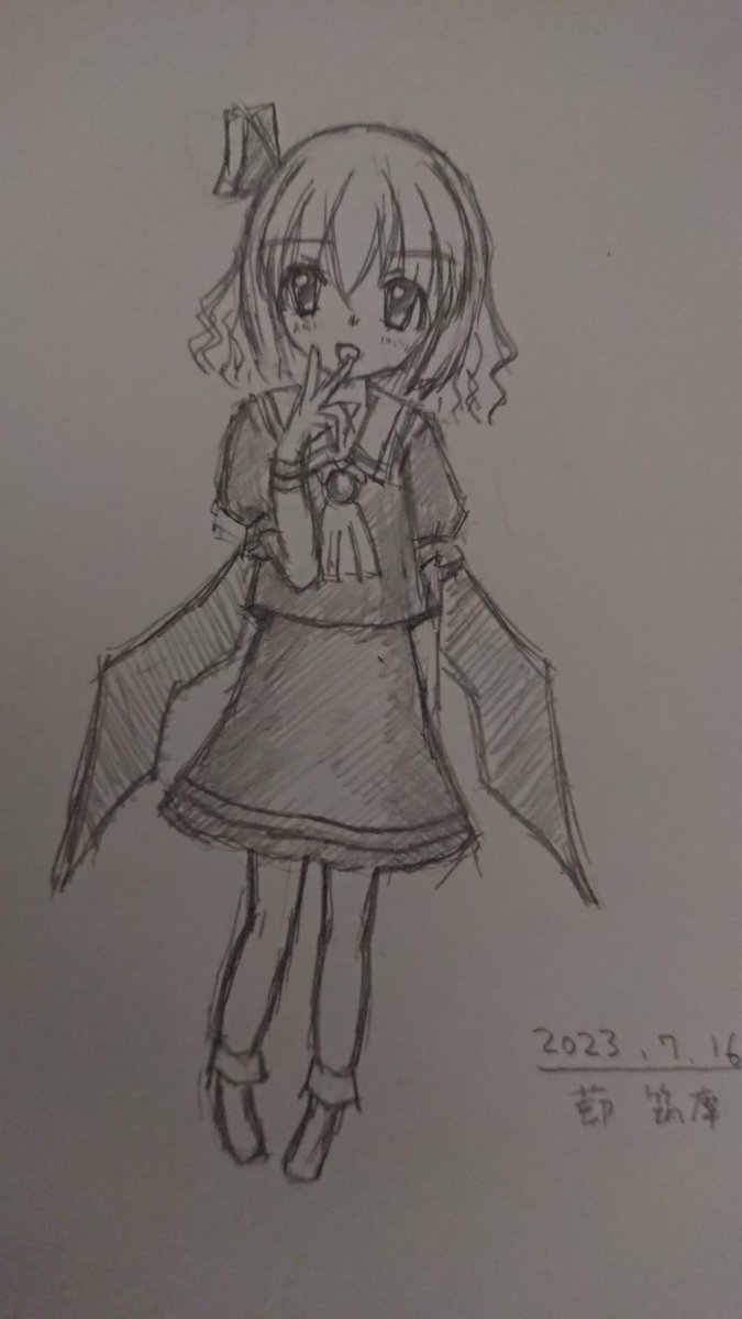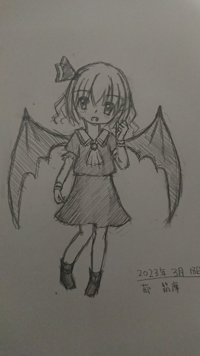 ( ・ω・)<オゼウサマ 背中の翼をPSO2再現おぜう様から参考にして描いたレミリア。位置まで再現せんでも良かったと反省。 この位の頭身がしっくりくるね😃 #絵描きさんと繋がりたい #レミリア