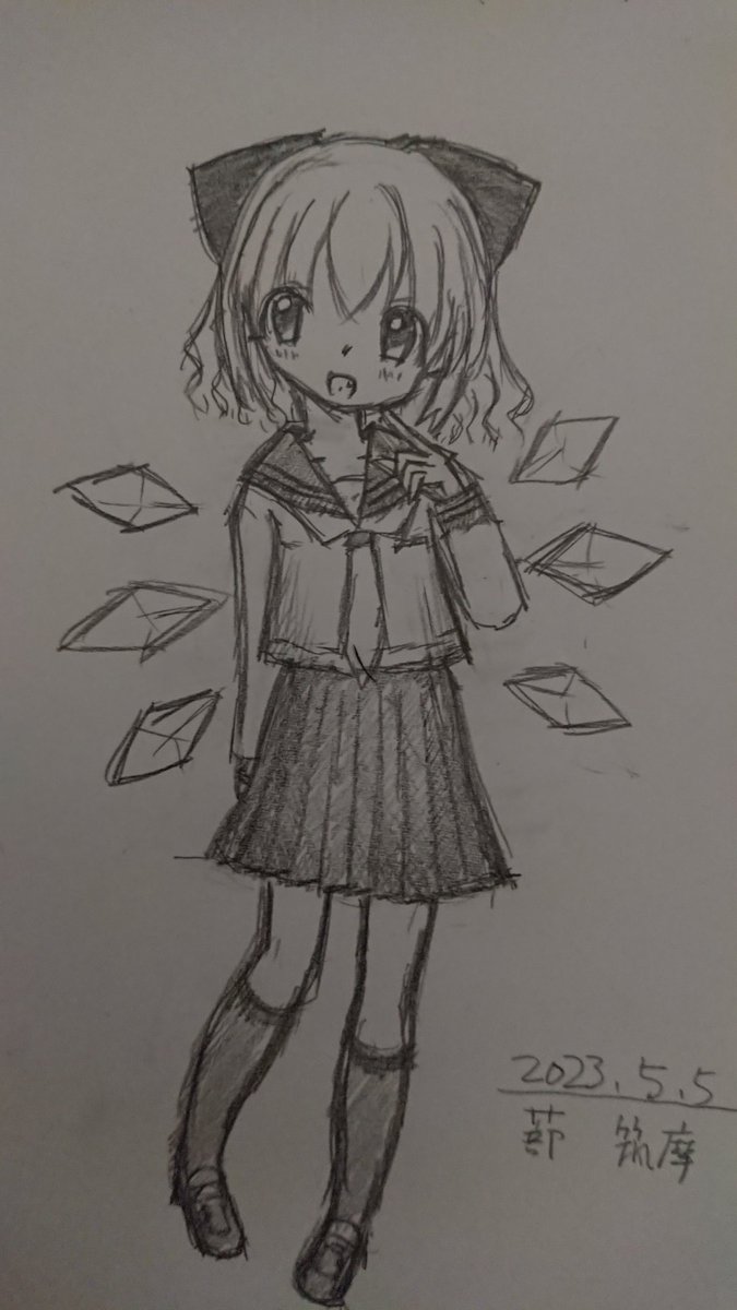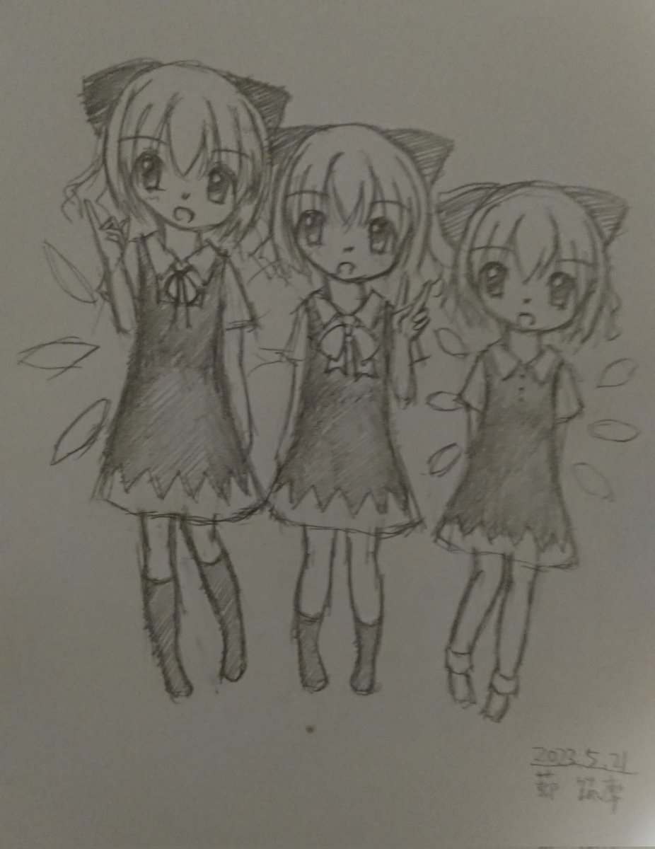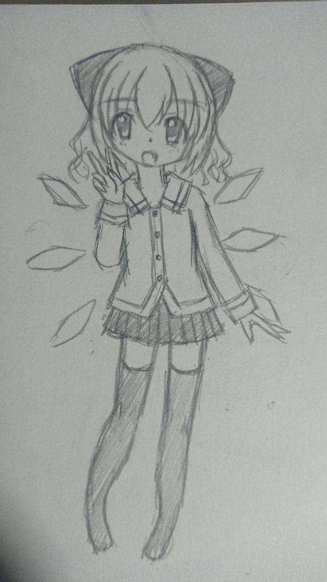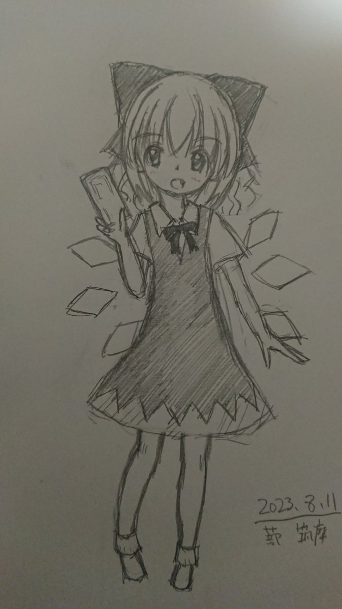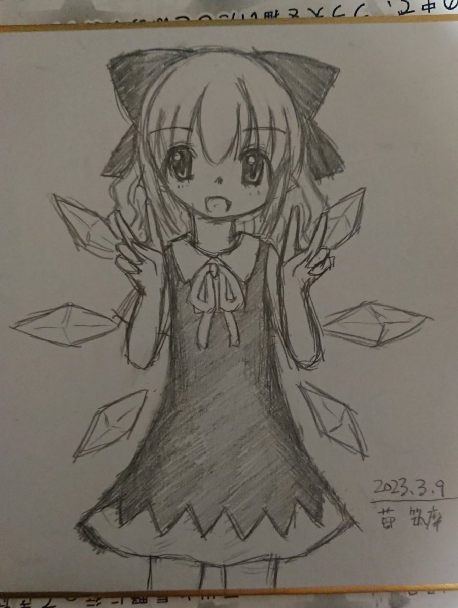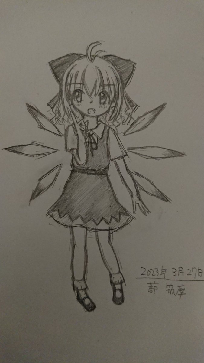( ・ω・)<ストロボハドコダ? 久々に描いてみた大妖精。 羽根が何か違う気もする。 それにしてもこの絵、シャーペンは本当に0.3mmって位に太い線やな #絵描きさんと繋がりたい #大妖精