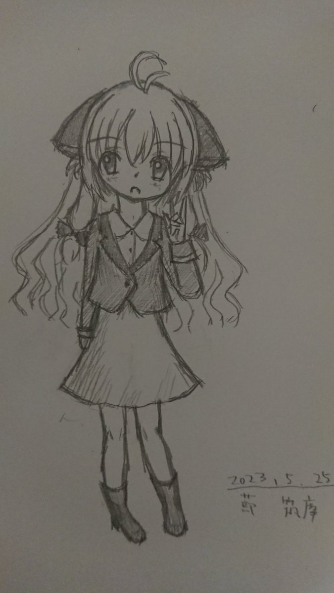 ( ・ω・)<FND!FND! レシュウンセーヤ>(´・ω・`) 久しぶりに描いてみたクラちゃんことクラウン・フォーレちゃん。 カメラ撮影角度変わると随分と絵の見え方変わるんよな… #絵描きさんと繋がりたい #アナログ絵