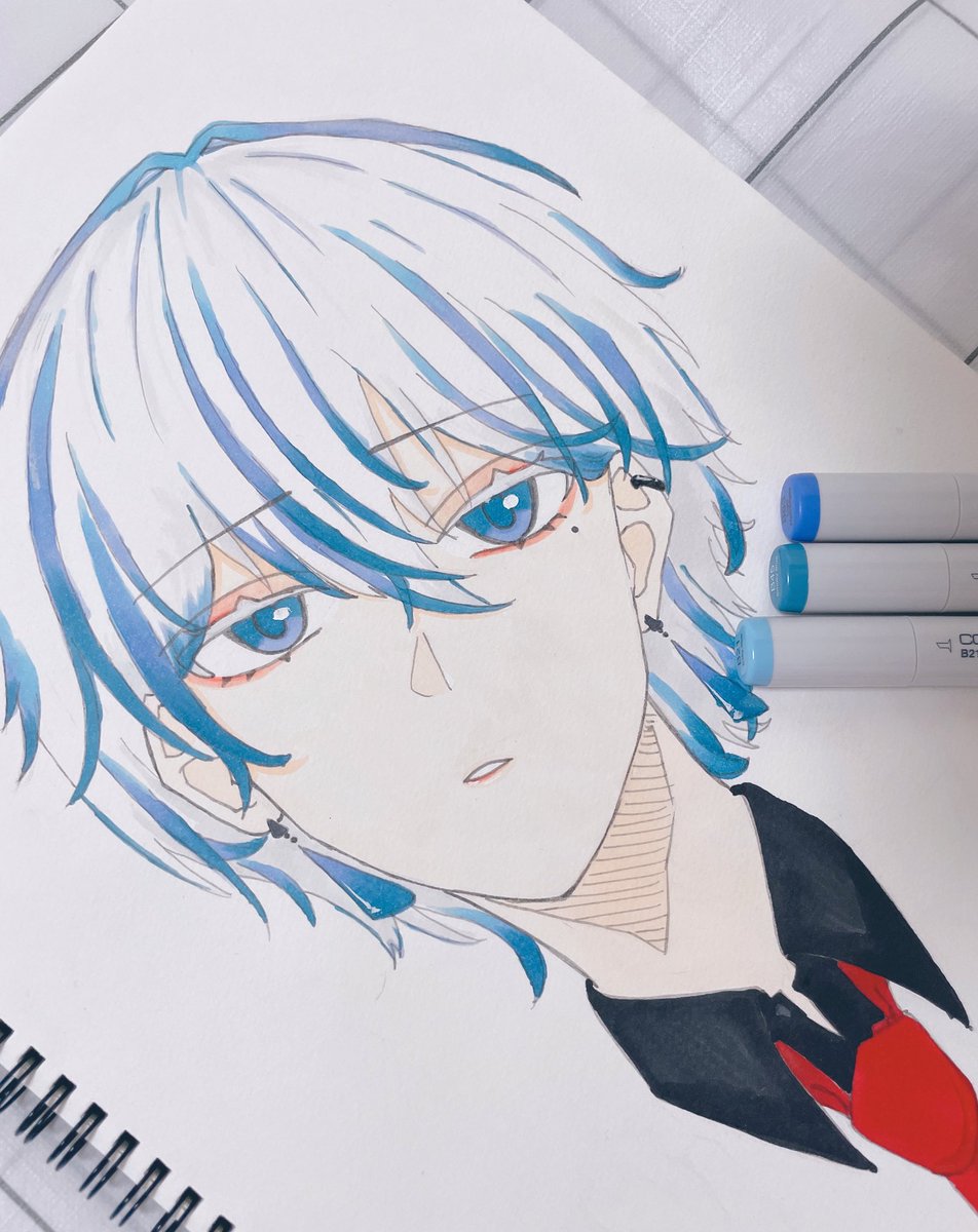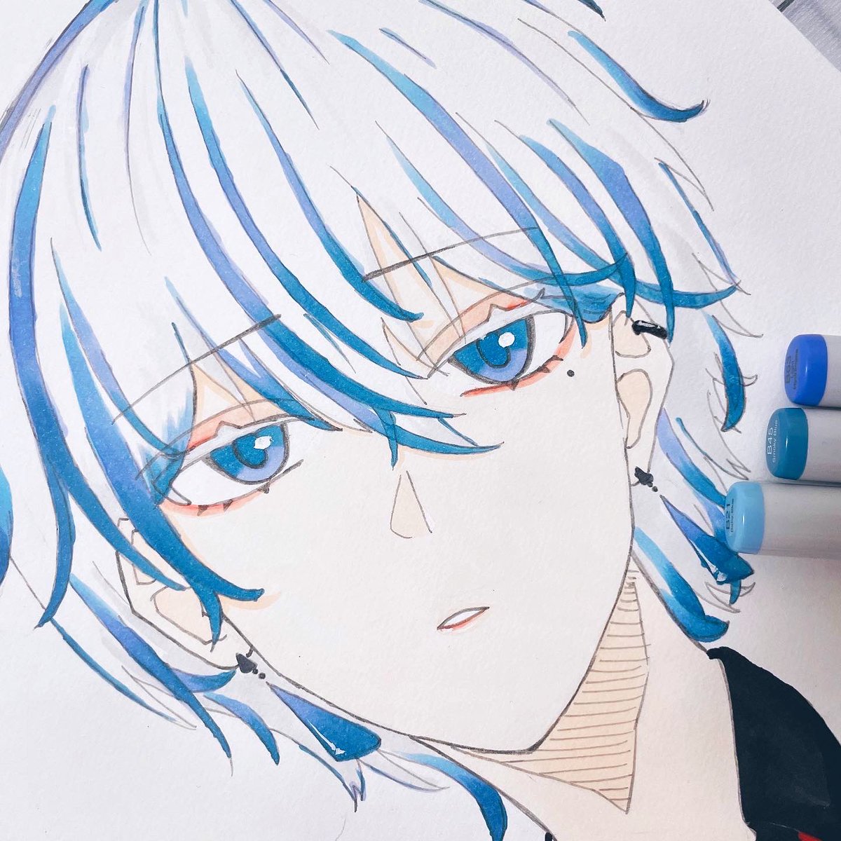 白髪青メッシュ男子〜🤍💙 #rkgk #イラスト好きさんと繋がりたい