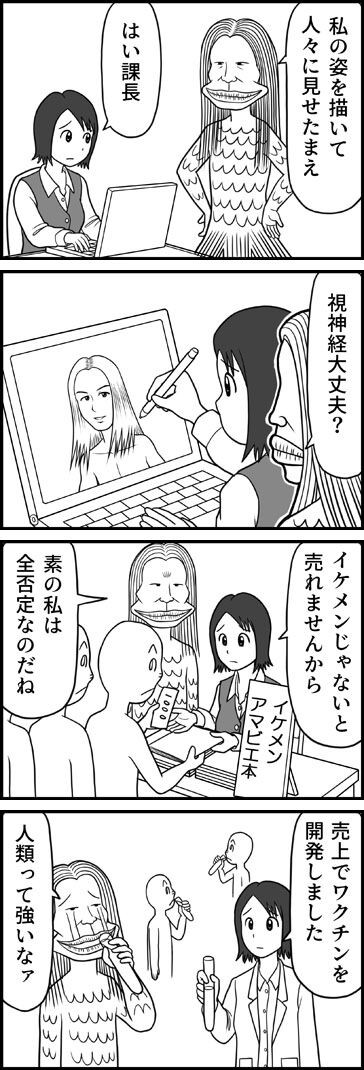 50 96 アマビエっぽい課長とその部下の漫画を描きました。 #アマビエ #創作漫画 20/03/21 22:52