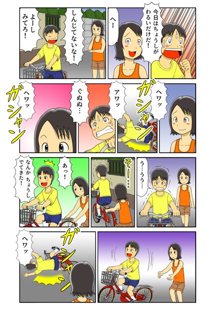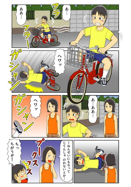 13 55 小学生が自転車に乗る練習をする漫画を描きました。 「でーん!~ひかりとひかり~」番外編「真赤な自転車」 #おマンガ #ジュブナイル #純ジュブナイル 23/05/05 20:40