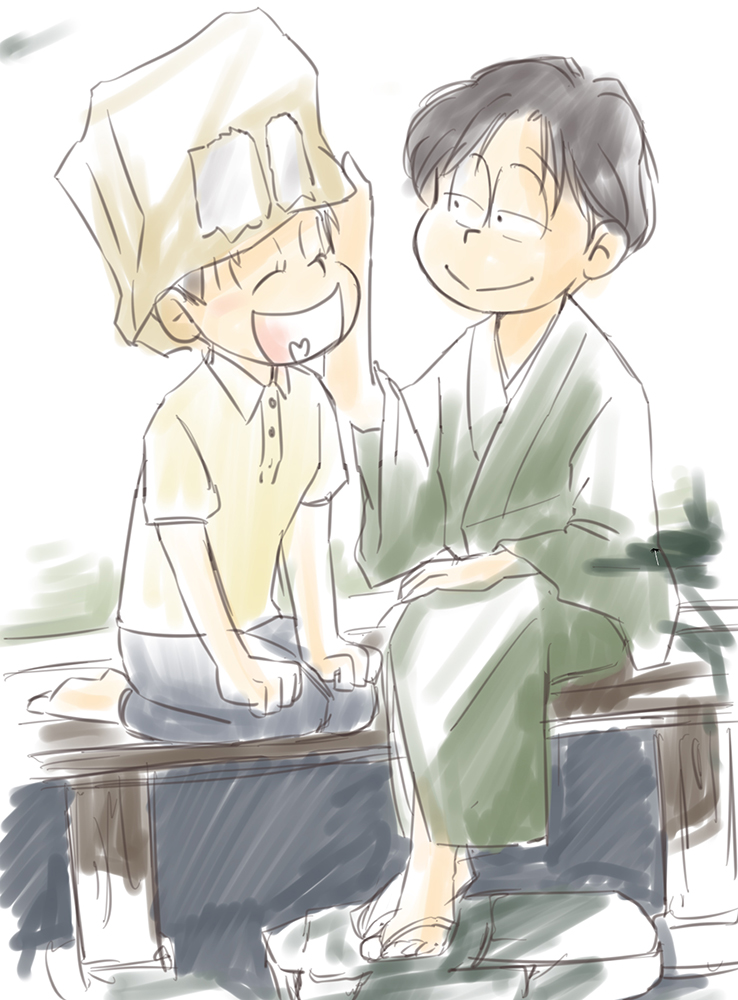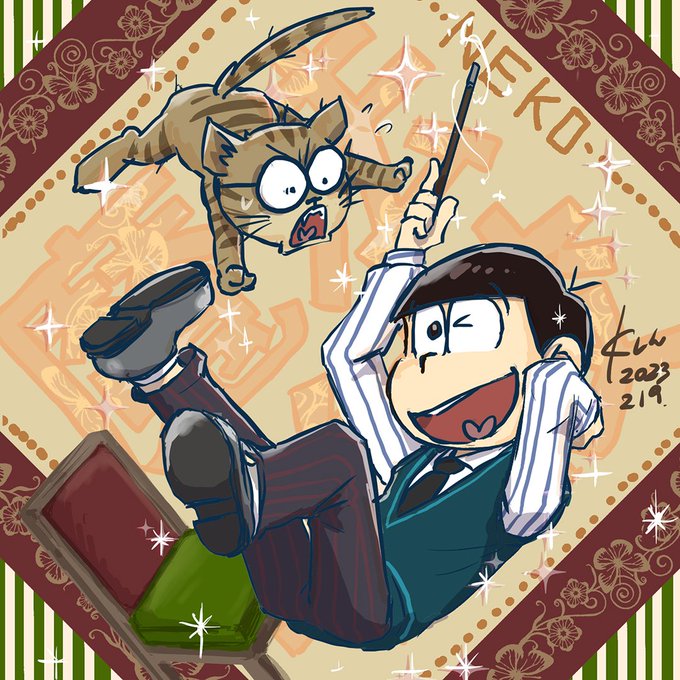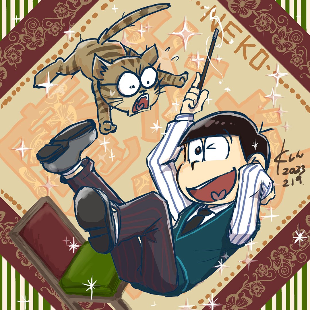 #百派繚乱ワンドロワンライバトル 「猫の日」 魔法学校18歳おそ松と猫にされたチョロ松くん可愛かったー。ラフまではやってあってそこから1時間です。今回もタイムラプスとってあったのでツリーに貼っときます。