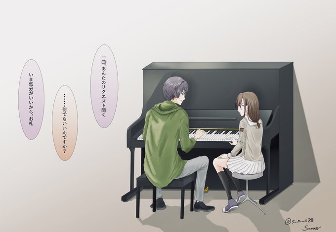 ヲ🧚♂️様の笹唯SSをお借りして描かせて頂きました。 空気感や音の表現がとても好きな作品です🥰 台詞抜粋させて頂いたラストシーン、唯ちゃんがどんな曲をリクエストして笹塚さんはどんな音で応えるのか、想像が掻き立てられます…! #スタオケ版フリードロー twitter.com/wo_chacha/stat…
