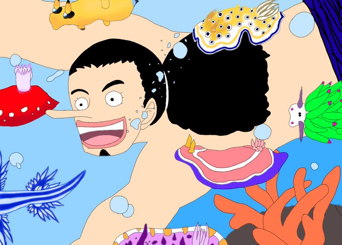 ウミウシから完成させていこうと思ったけど、塗るの飽ききたので、ベースを先に全部塗ってみた。 #イラスト #イラスト初心者 #デジタルイラスト #イラスト途中 #絵描きさんと繋がりたい