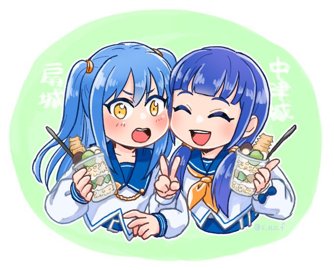 中津城ちゃん&扇城ちゃん姉妹withお城パフェ #城プロ絵