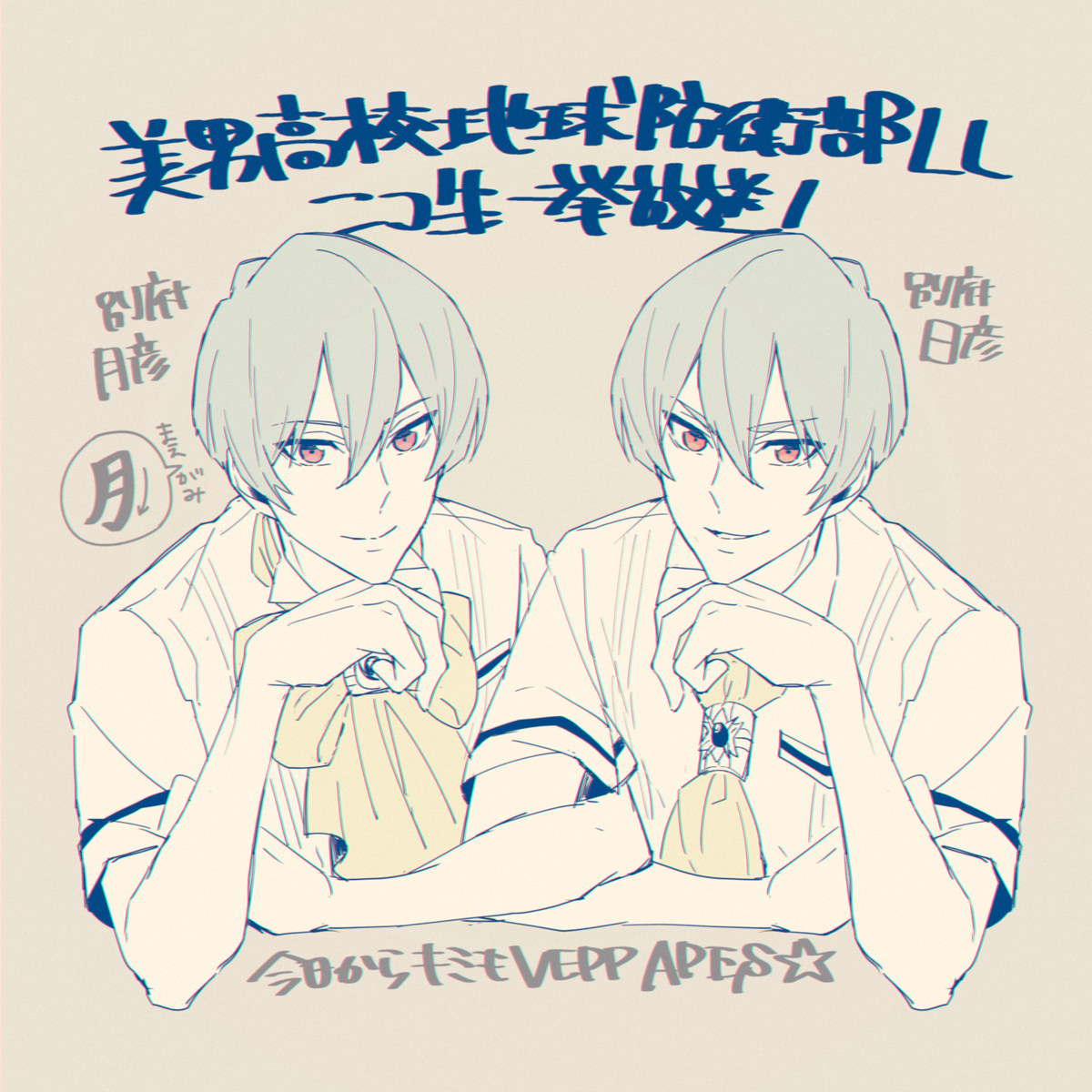 美男高校地球防衛部LOVE!の部一挙放送ありがとう~~✨✨✨😭🙏スーパーアイドル双子の別府くんの可愛さ宣伝用に一昨年出した本の絵あげときます~なにとぞ防衛部をよろしくお願いいたします