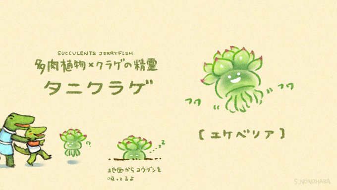 296 1700 多肉植物×クラゲの精霊 タニクラゲ 多肉植物のエケベリアは品種がたくさんあり、室内でも気軽に育てられるよ。日当たりの良い場所が好きだけど夏の直射日光はちょっと苦手…冬は室内に入れてあげてね。 21/05/12 03:35
