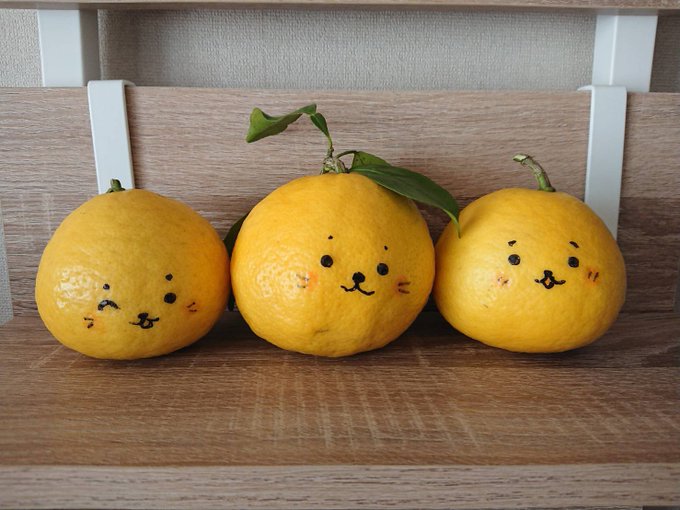 みかんたん (庭で採れたミカンにマジックで顔を描いてみました) #しろたん