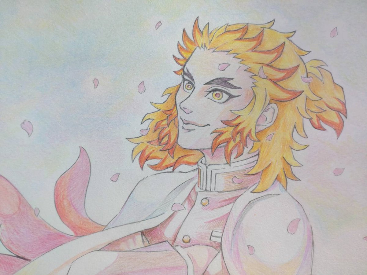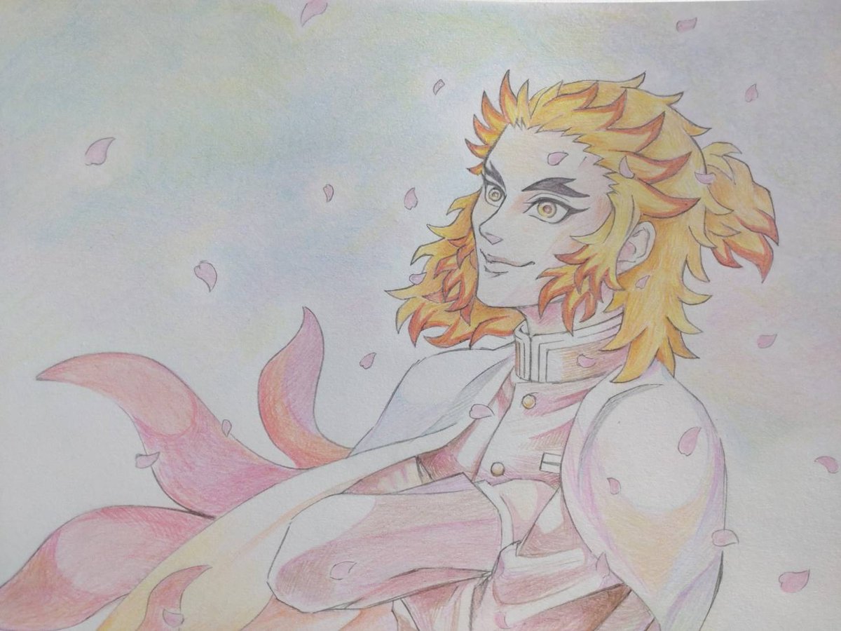しばらくデジタルで描けない環境なので、久しぶりのアナログ絵。たまの手描きも楽しい。今年は🌸の咲いてない地域の移動でどうあがいても🌸が見られない、そんな悲しみを込めて。 #鬼滅の刃 #鬼滅の刃イラスト #鬼滅の刃ファンアート #煉獄杏寿郎 #煉獄さん