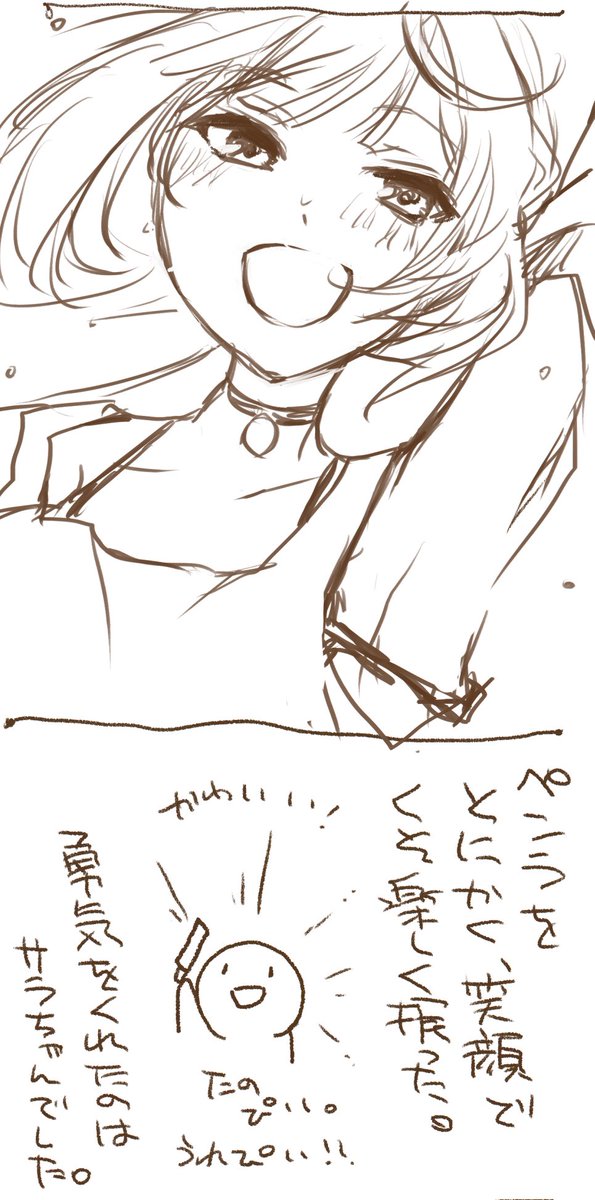#このタグを見た人はラフ画とその完成絵を見せる PCデータ何もなさすぎてこれしかなかった。たぶん1時間かけてないやつ。