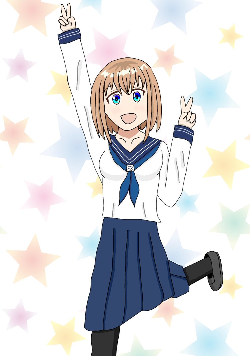 海凪ひよりちゃんです ひよりちゃん、勉強できそうで3人の中で一番できなかったり、料理がまだまだだったり、フライ以外の釣りはよく知らなかったり、そんなポンコツなところが大好きです🌟😊 目のハイライトがつぶれてしまったのが残念でした……💦 #スローループ #絵描きさんと繋がたい