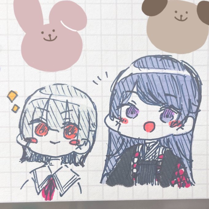 1 15 #上弦画 休憩中に色→線の順で描いてたら可愛く描けたので……🙌 22/10/08 16:22