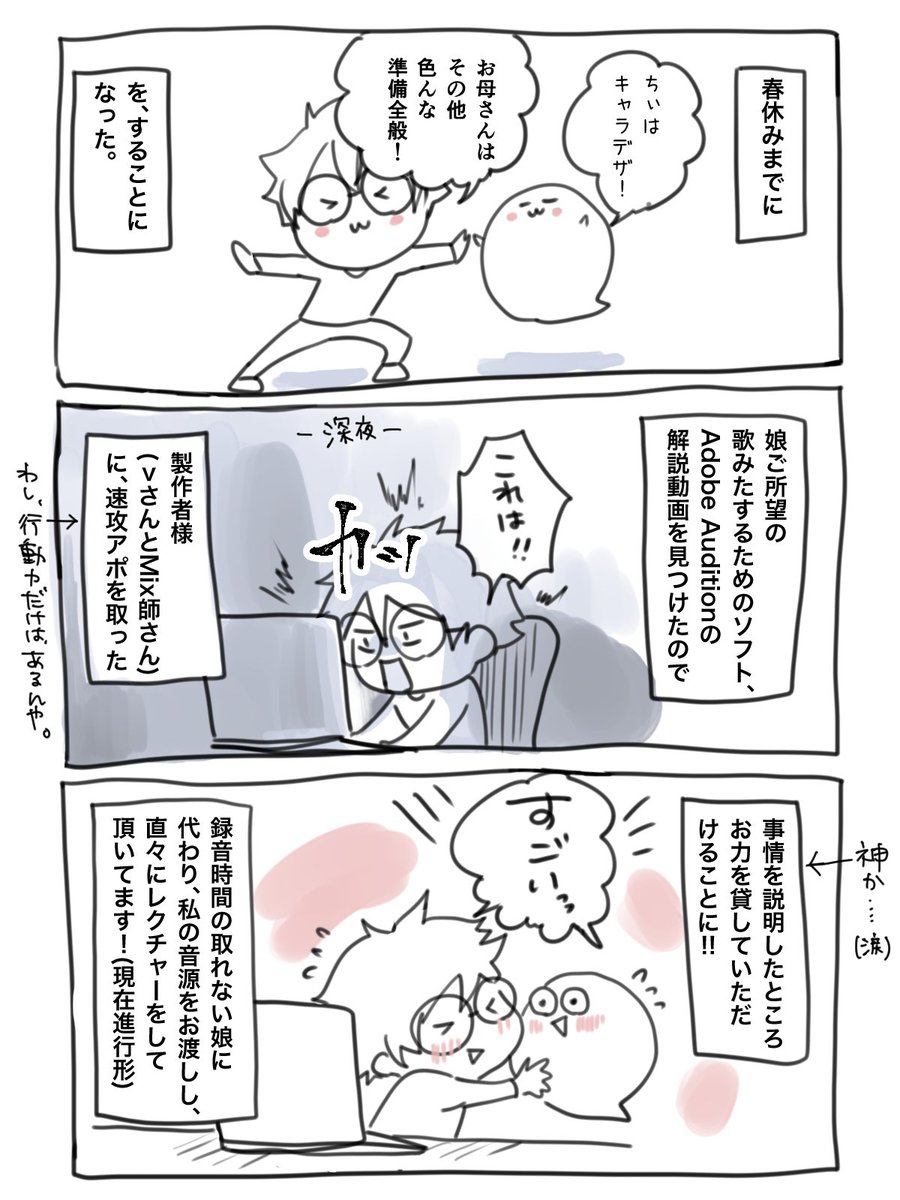 『娘(小4)がVtuberになりたいと言い出した④』 録音方法やMixについて調べたことにより、 よき師匠陣に巡り合うことができました。 娘サマサマですが、その話は後日^^ この後、小学生以外と忙しい問題にぶち当たることになります。 #育児漫画 #Vtuber #お休みvtuber まだ寝ないが!