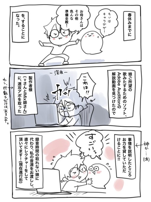 『娘(小4)がVtuberになりたいと言い出した⑦』 歌みた録音とMixするためのDAWソフトの使い方動画。 私のやりたい事を説明してくれてる、唯一?くらいの解説動画の製作者様にコンタクトが取れ。。。!! 親子ともども、感謝しかない。 紹介した動画などはツリーに! #育児漫画 #おやすみVtuber