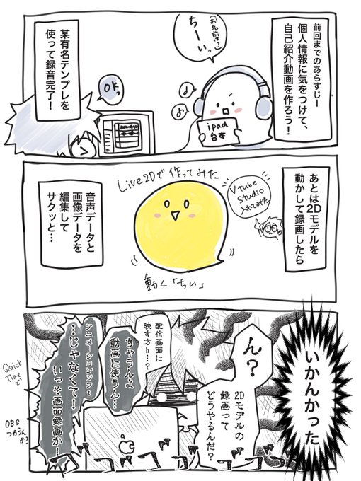『娘(小4)がVtuberになりたいと言い出した(11)』 おはようございます! 月曜日! 自己紹介動画を作らなきゃ! と気づいた娘。 録音は終わったけど、肝心のところで「?」続出w OBS使うの? Macは透過背景非対応?ってどゆことですかー?涙 調べ調べ…🥺 #育児漫画 #おはようVtubar #Live2D