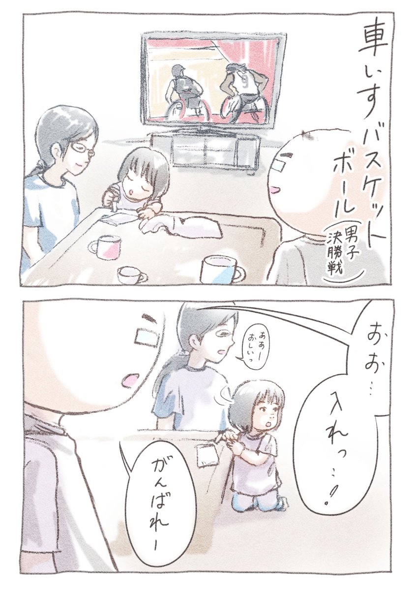 7 58 パラリンピック、#車いすバスケットボール を応援していた時のことです。楽しかったし嬉しかった #3歳 #育児漫画 #絵日記 21/09/08 07:45