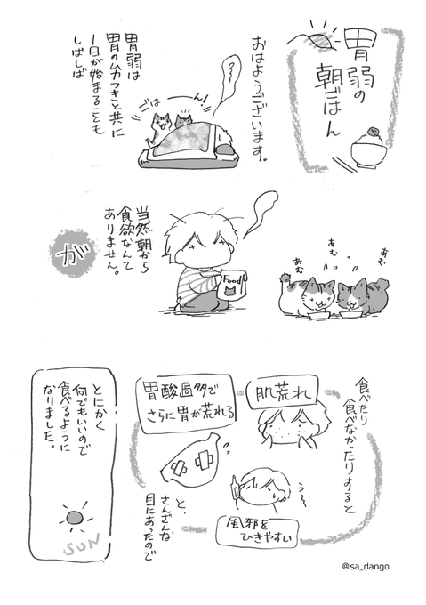#こんにちは胃弱です ④ 今日は胃弱の朝ごはんの話 2015年コミティアで出した胃弱な自分の同人誌を↑の胃弱ですタグつけて2,3日に数ページずつUPしていきます。読んでってちょ(埼玉在住名古屋人) 次回は2月4日金曜日お昼頃にUPします #漫画が読めるハッシュタグ