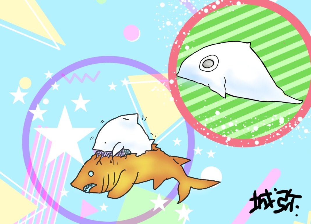 #今月描いた絵を晒そう 1枚目から ・シンカリからハヤト&ミク ・「ダークネスヒールズ リリ」からリリ ・ガチャポンフィギュアの指乗りドラゴンとワーヒー(半蔵)の光龍の共演絵 ・ガチャポンフィギュア「サメの抜け殻」ホホジロザメ羽化の正面顔(笑)