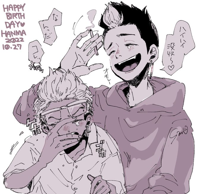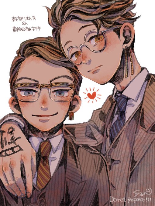 幹部軸と最終回軸:半稀 あどけない顔した幹部はんまくんとちょい悪顔の平和キサピとかかわいいかなと思って描いた(・▽・) いつもと違うペンを使ってみたらふわふわだ(^〜^)