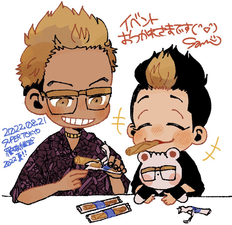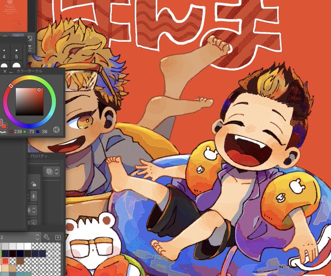 96 477 幹部軸と最終回軸:半稀 あどけない顔した幹部はんまくんとちょい悪顔の平和キサピとかかわいいかなと思って描いた(・▽・) いつもと違うペンを使ってみたらふわふわだ(^〜^) 23/08/19 22:25