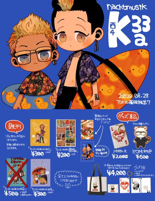 2022/10/16 TOKYO罹破維武8新刊だよ 西4[N 37a] nachtmusik A5/オフ/20P ¥300 (イベント頒布価格) 半間くんの年齢操作(幼児化)本ゆるゆるほのぼの ※続刊ですが、この本だけでも多分読めます ※ はんまくんとキサピ以外も出てきます(長内くんたくさんいる)
