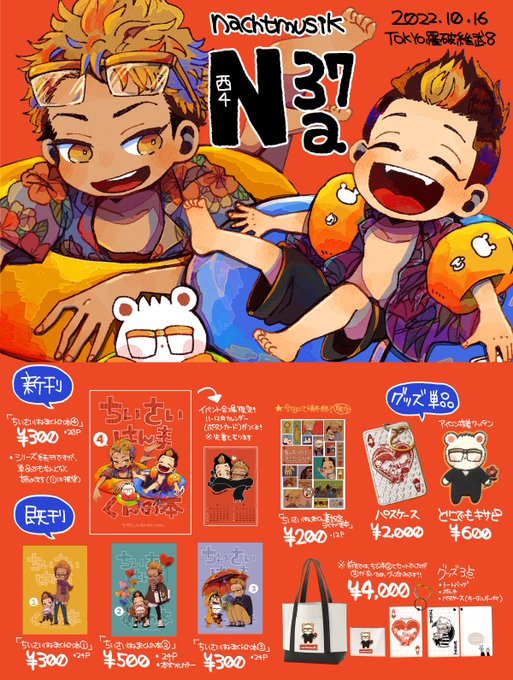 62 366 2022/10/16 TOKYO罹破維武8新刊だよ 西4[N 37a] nachtmusik A5/オフ/20P ¥300 (イベント頒布価格) 半間くんの年齢操作(幼児化)本ゆるゆるほのぼの ※続刊ですが、この本だけでも多分読めます ※ はんまくんとキサピ以外も出てきます(長内くんたくさんいる) 22/10/14 22:01