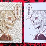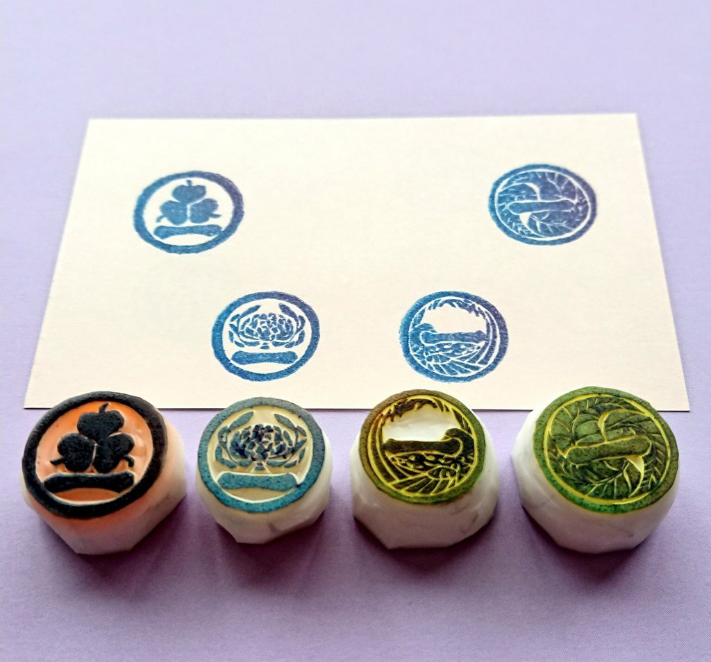 #今月描いた絵を晒そう その3 #消しゴムはんこ #刀剣乱舞 御前の紋を新しくつくりましたね。姫鶴くんはまた後日… 消しはんは書いた絵ではないが、トレペに1回写し絵しているのでまぁ書いたといえば書いている